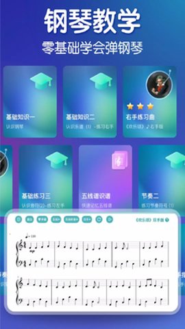 1、这款学琴练琴APP不仅仅是一个钢琴模拟器,它还提供了零基础课程教学和AI智能陪练纠错等功能。