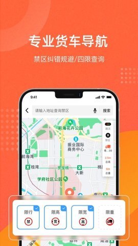 2、此外吨吨货运地图App还提供了专业的货车导航功能,包括四限查询和禁区规避等功能,能够帮助百万司机更高效地完成运输任务,提供更便捷的收入方式。