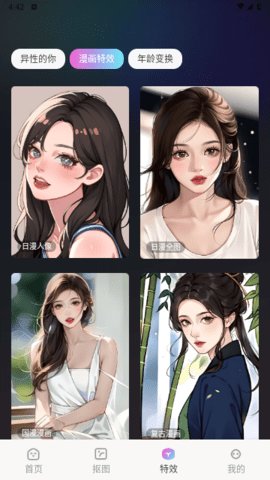 2、例如,性别转换、漫画脸、龄变换等等,这些有趣的特效玩法可以帮助您将照片制作成想要的样子。