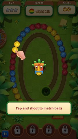 1、游戏操作非常简单,玩家只需通过鼠标或触摸屏发射球,让它们组成至少3个相同颜色的球的组合,就能消除它们。