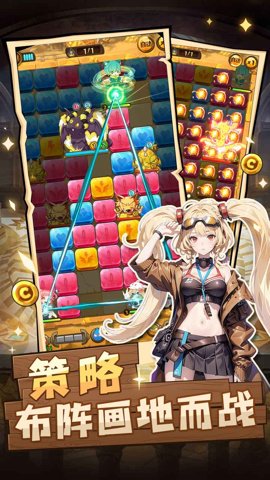 2、传趣消消乐是一款创新的策略消除游戏,玩家需要在消除方块的同时注意战略选择和角色的羁绊力量。