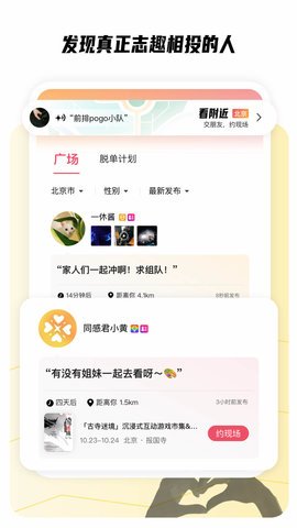 1、它以兴趣为核心,让用户能够找到和自己兴趣相投的人进行交友聊天,给用户带来更多的乐趣。