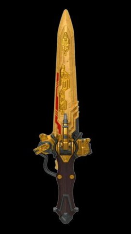 1、王者圣剑•零式的机身全长约520mm,拥有独特的发光效果和金色扳机,刀身形似锹形虫角。