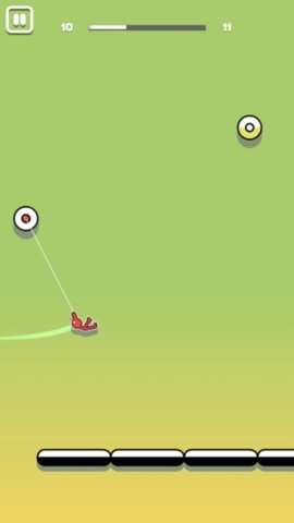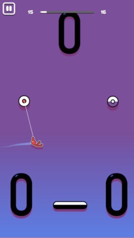 1、游戏的玩法非常简单,玩家只需点按屏幕,用火柴人的抓钩勾住障碍物,然后松开屏幕让火柴人继续前进。