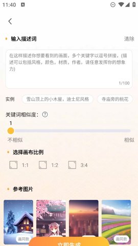 2、用户可以通过参数设置和关键词的导入来一键生成符合自己心意的图片。