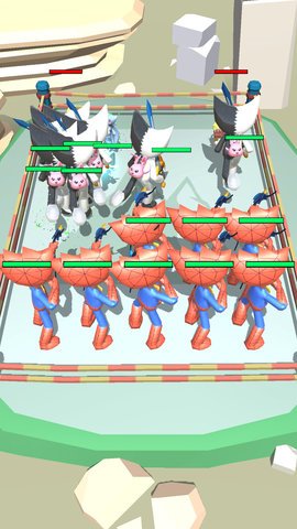 1、游戏的主要玩法是合成对战,玩家需要在每一关的准备阶段将蓝色怪兽进行合成,以提升自己的战斗力,然后与对手进行战斗。