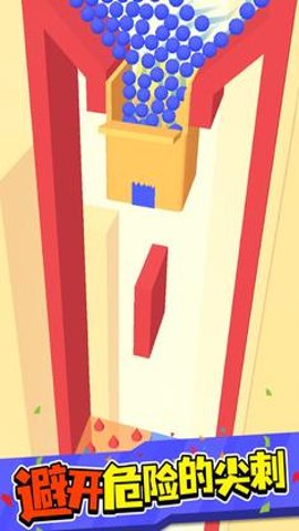 1、游戏中会出现各种危险的尖刺和障碍物,玩家需要考虑障碍物的位置和移动方式,选择最佳的掉落路径,避开危险并收集更多的小球。