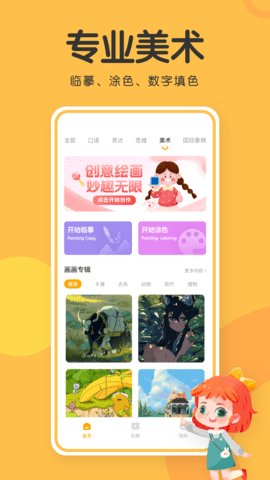 2、此外这款应用还提供美术学习,让孩子们可以亲自动手临摹和创作,提高他们的审美能力和动手能力。