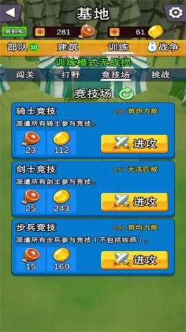 2、玩家需要不断获取资源和金钱,可以不断招募更多更强的战士,提升自己的实力,最终成为真正的战场大亨。