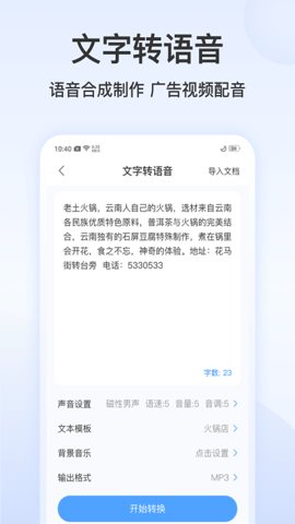 录音文字转换专家会员版具备多种实用功能,帮助用户更好地完成录音与文字之间的转换。用户可以将录音文件快速准确地转换为文字文档,节省手动转录的时间和精力。软件支持将文字文档转换为语音播放,方便用户随时进行听写或朗读练习。用户只需选择要转换的文件,等待软件自动识别和转换,转换完成后即可查看和编辑结果。软件还提供了调整语音合成参数的功能,如语速、音调等,用户可以根据个人喜好进行设置。在设置中,用户可以选择转换语言、调整转换参数等个性化设置,确保软件的使用体验更加贴合个人需求。