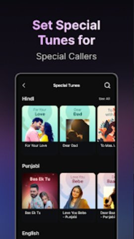 2、除了音乐播放功能外,Wynk音乐还提供了特殊的Hellotunes功能,让用户可以设置个性化的来电铃声,为来电者增添些许个性。