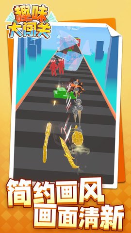 1、趣味大闯关是一款非常有趣的跑酷手游,玩家可以在游戏中体验到清洁跑酷玩法、动作射击和模拟体验等多种不同类型的玩法。