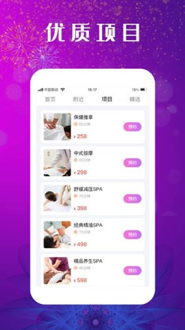 1、在嬉遇app上,您可以选择喜欢的按摩服务项目,并预约心仪的技师。