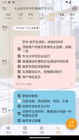 3、我个人喜欢使用卡片笔记来记录一些突然的灵感,处理待办事项和复盘,同时也可以与他人分享生活。