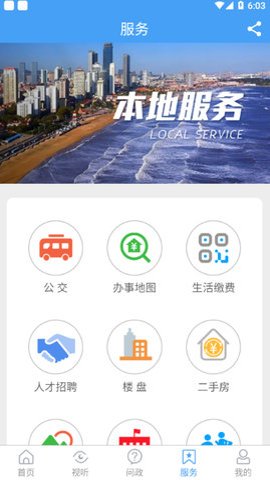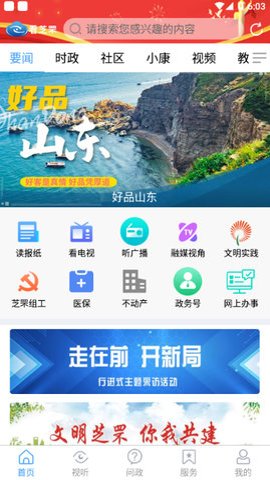 3、此外这款应用还提供了视频、直播和H视听等融媒模块,用户可以第一获取实时资讯,直观了解芝罘的内涵。