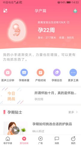 3、v99版本进一步优化了首页的布局,确保更好地呈现与不同孕期相关的宣教内容。