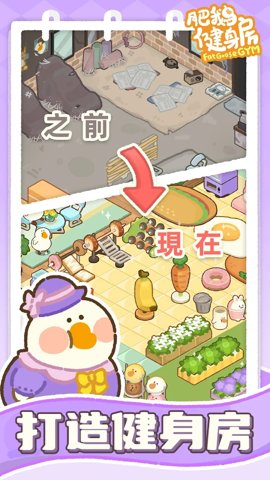 1、同时玩家还可以不断提升自己的健身房等级,解锁更多的器材,满足不同肥鹅的需求。