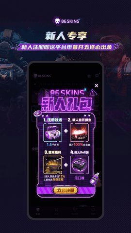 86SKINS开箱是一款全新上线的开箱平台。这款应用旨在帮助用户更好地进行开箱,提供多种功能供用户使用。它将热门IP与盒中好物相结合,给用户带来超乎想象的惊喜。在盒中,有丰富多样的物品等待着你的发现,拓展你的收藏领域。此外还有多种奖励等着你拿,包括神秘礼品、优惠券等。作为一款围绕着csgo游戏皮肤饰品为主题的游戏辅助app,86SKINS开箱的目标是为玩家提供更有趣的csgo饰品获取方式,并采用独特的获得模式,备受广大玩家的喜爱。