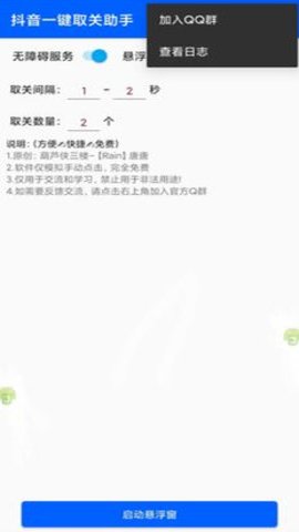 3、使用取关助手三合一软件,你可以选择使用默认的取关设置,也可以根据自己的需求输入自定义的取关间隔和取关数量。