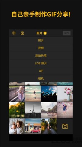 1、除了拍摄视频,imgplay还提供了照片转GIF的功能。