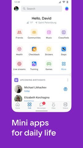 4、从功能上来看,VK社交平台的玩法主要包括关注社团和名人,观看视频和电影,与家人和朋友进行聊天等。