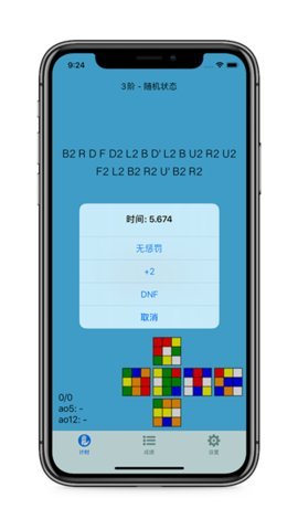 2、此外它还支持成绩修改,用户可以在计时结束后确认+2/DNF,以便更准确地记录成绩。