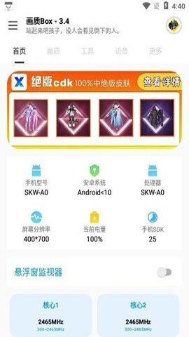 1、除了提供优质的画质调节功能外,画质Box还为用户提供了更多的游戏辅助工具,让您可以自由地解锁和使用它们。