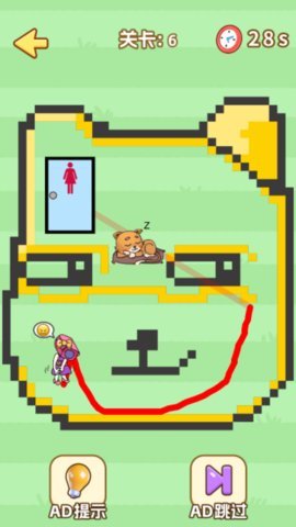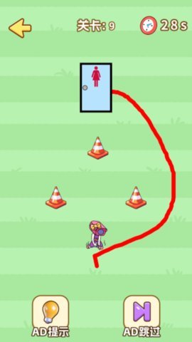 3、玩家需要运用自己的逻辑思维和创造力,在屏幕上画线来引导人物走到厕所的位置。