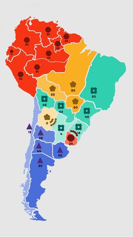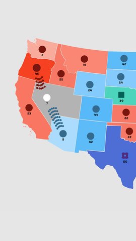 4、侵略的定义是当派出去的兵数量大于目标地区的小兵数量时,便可以成功占领。