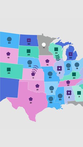 1、玩家需要动动脑筋,为了扩张而战,将属于自己的颜色铺满整个地图。