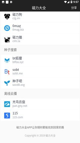 磁力大全免费版是一款资源丰富的免费下载工具,它为用户提供了最好的下载体验,无论你是想看各类作品还是很多内容,首页里都能搜索到。软件无需会员,没有广告打扰,给用户们一个纯净的下载环境。无论你是想下载电影、电视剧、音乐、游戏还是其他类型的资源,磁力大全免费版都能满足你的需求。它拥有海量的资源,你可以直接进行搜索,找到你想要的资源并进行下载。不仅如此,磁力大全免费版还提供了在线点播功能,通过专有技术让手机播放更流畅、更快。你可以随时随地观看高清资源,享受视觉盛宴。720P超清画质让你感受影院般的视听体验。只需输入你想要查询的关键词,磁力大全免费版会自动为你搜索不同的资源,让你轻松找到你想要的内容。你还可以将自己搜索得到的资源分享给好友,一起来观看资源。软件的界面设计简洁清爽,用户在这里可以找到更多的资源,无需繁琐的操作即可快速下载。磁力大全免费版还能对多种智能影视文件资源进行汇聚整理,让这些影视资源使用更为智能轻松。它提供了一键下载功能,让用户们能够更加便捷地下载各种影视作品。同时用户们还可以通过智能条件筛选功能,在这里对各种影视资源进行筛选查询,找到符合自己需求的资源。磁力大全免费版是一款功能强大、资源丰富的免费下载工具,它为用户们提供了最好的下载体验,让你随时随地享受各种影视作品的乐趣。无论你是想看电影、电视剧还是其他类型的资源,磁力大全免费版都能满足你的需求,让你畅快下载,尽情享受。