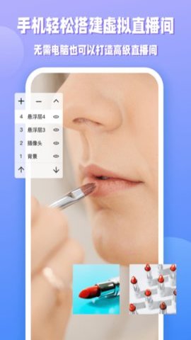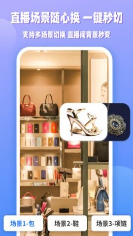 2、这种功能可以支持多场景切换和多图层叠加,让用户可以轻松在手机上搭建具有虚拟背景的直播间。