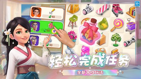 欢乐消除开心假日是一款卡通模拟经营题材的游戏,玩家可以在其中体验到趣味的模拟经营玩法,并且游戏中还有超多内容等待玩家去体验。你将扮演一名充满热情的装修设计师,与好友一同经营你们的工作室。你需要根据不同客户的需求来完成重新装潢的任务,为每个房间创造出独一无二的设计。你可以按照自己的想法和天马行空的想象力来打造出令人眼前一亮的设计作品。每次完成合成任务后,你将获得一定数量的货币,通过积累货币,你可以购买家居装饰物品,对房间进行你心仪的设计。