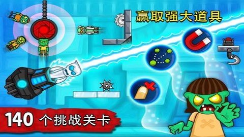 3、游戏的玩法可能会让人感到吓人,因为玩家需要使用一个发射器将玩偶喷射到各种尖刀机关上戳死僵尸。
