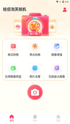 相机软件贴纸滤镜相机换脸相机桂佰泡芙相机是一款功能强大的手机相机拍摄工具。它提供了丰富的拍照功能,让用户能够充分体验到各种美颜和滤镜贴纸等特效,帮助他们一键修复照片,拍出最美的自己。此外相机还提供了多种精彩的相机模板供用户选择,让他们根据自己的喜好拍摄出独一无二的作品。