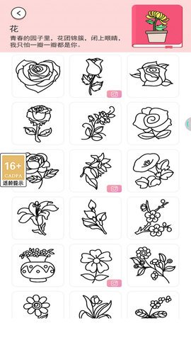 2、 小小漫画家提供了丰富的素材供玩家创作,包括甜美公主、古风人物、软萌宠物、唯美花卉等。