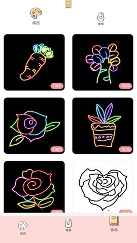 1、 小小漫画家是一款充满乐趣的涂色游戏,它不仅提供了简笔绘画的教学,还有荧光卡通绘画教程,让你的作品闪闪发光。