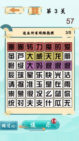 3、 在文字梗传奇中,玩家将面对各种各样的汉字,需要根据关卡中的提示解决谜题。