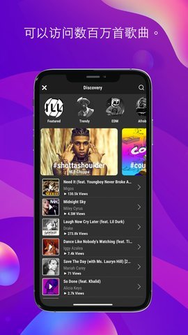 3、此外Triller还拥有海量的音乐资源,用户可以在其中找到数百万首歌曲进行聆听,为视频添加更多元素。