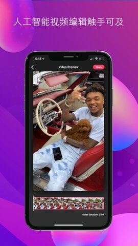 2、另外Triller还提供了自动剪辑功能,可以根据用户喜好自动剪辑相应的视频片段,并提供了视频分享功能,用户可以将制作的视频分享给好友和家人,共享生活片段。