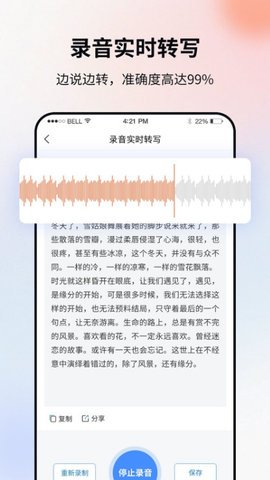 3、此外该应用还支持录音文件转文字、实时翻译、导入带文字的图片,并通过OCR功能提取文字等功能。