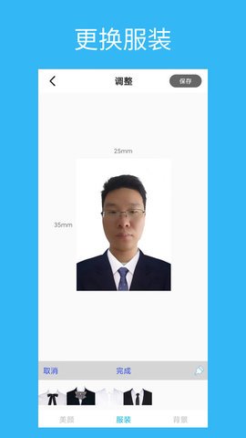 3、它还能智能调整拍摄角度、自带实景测光技术,自动找出最合适的证件照模板,自带美颜功能和背景自动抠图功能,让用户的证件照更加个性化、精致、纯净。