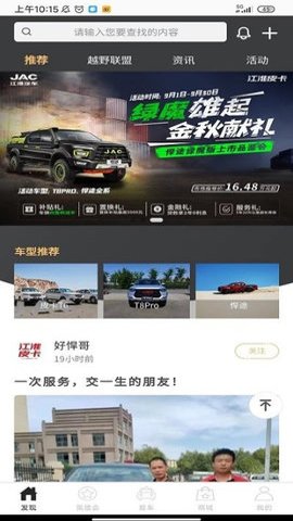 4、在【发现】功能中,用户可以获取到江淮皮卡最新的资讯,与其他车友畅所欲言,参加各种活动,让生活更加精彩。