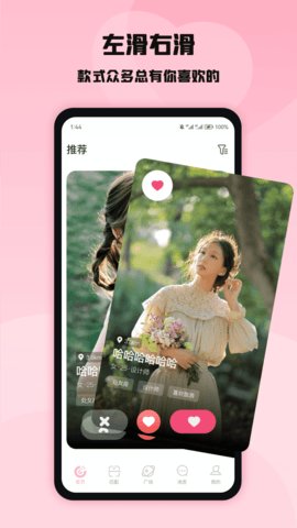 1、这种自由的交友方式非常超前,左滑代表无感,右滑代表喜欢,通过滑动卡片来遇见身边有着相同爱好和兴趣的人。