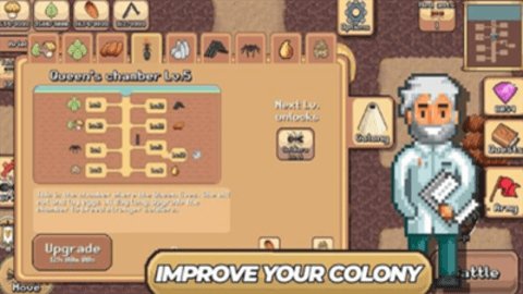 2、通过不断提升角色的等级和属性,玩家可以打造一支强大的蚂蚁队伍,应对各种场景的变化。