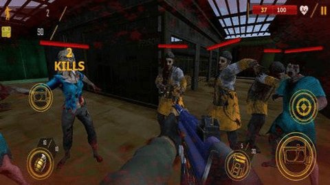 2、游戏中的战斗场面紧张刺激,僵尸将从各个方向攻击玩家,玩家需要准确射击来保护自己的生命,并尝试消灭尽可能多的僵尸。