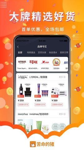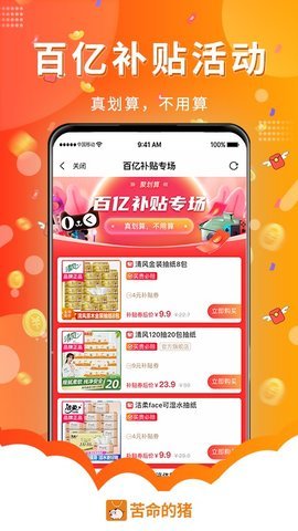 2、 苦命的猪App是一款功能丰富、服务周到的省钱购物软件。