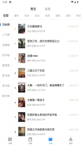 2、无需担心书荒,因为榜单会实时更新,芝麻免费小说app中拥有海量的小说供用户选择。
