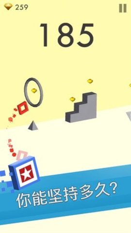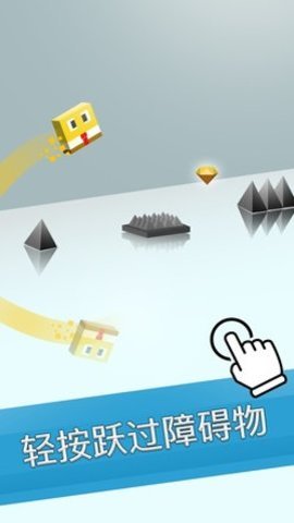 2、玩家只需要点击屏幕一次,就可以让小方块跳跃一次。