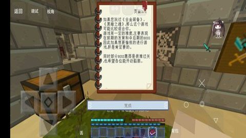 3、只有怪物手册有点用,看完墙上的牌子后按下按钮,你就会来到初始小屋,打开箱子,右键一下,你就会学会熔炉和药水台的使用方法,这些东西可以拿走。